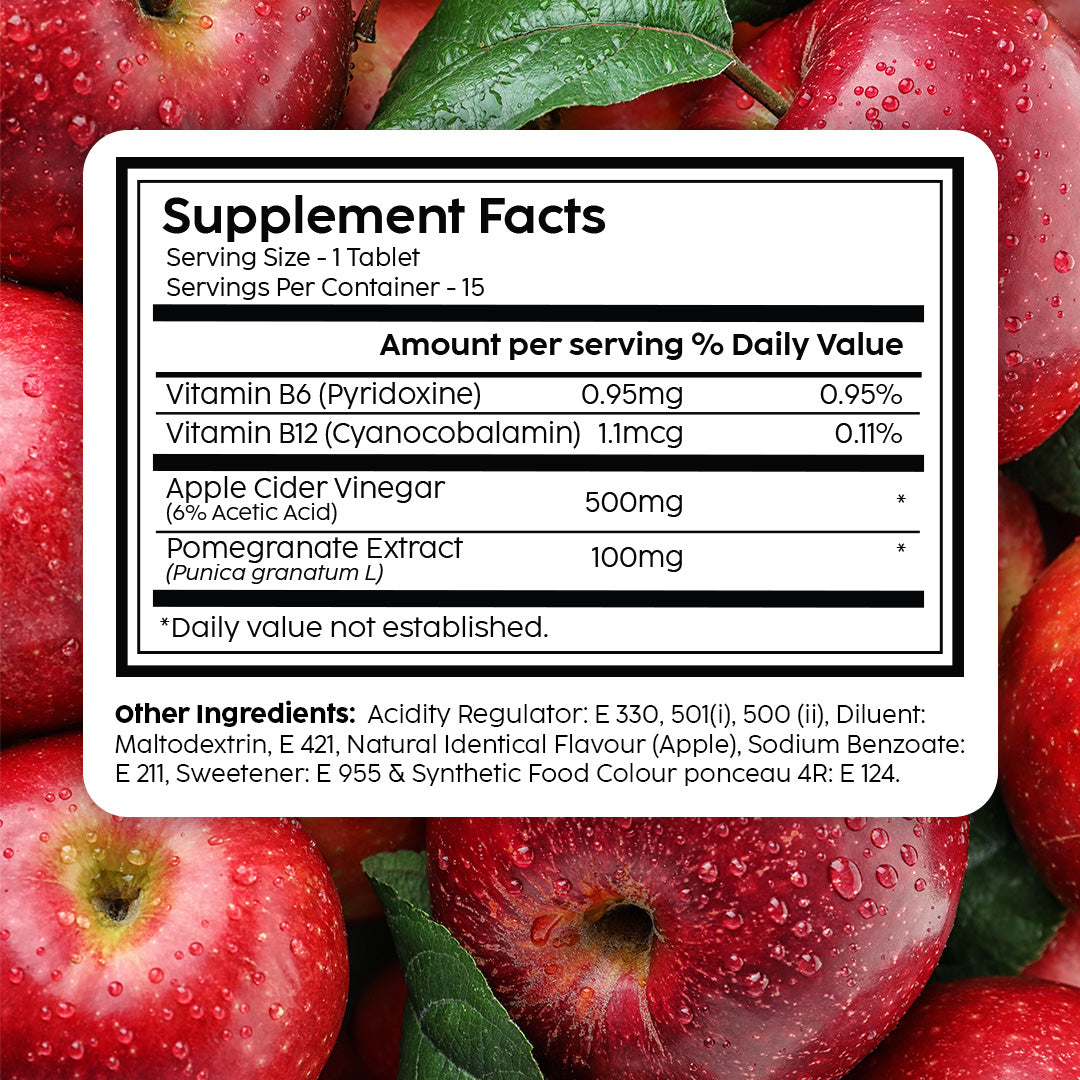With 500mg Mother ACV, vitamins, and pomegranate extract, it supports regular energy metabolism and a healthier routine alongside a balanced diet and exercise. Easy to consume & travel friendly No added refined sugar Supports your fitness journey