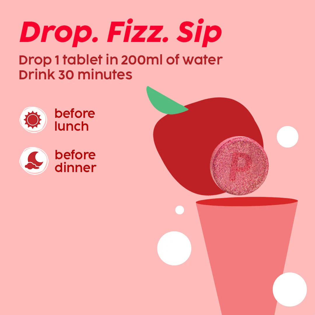 A fizzy apple cider vinegar supplement from Plix Life designed to support digestion, metabolism, and healthy weight management. It helps reduce bloating, curb cravings, and boost daily energy with added vitamins, while offering a sugar-free, convenient alternative to raw ACV that tastes refreshing and enjoyable.Tastes deliciousSupports your fitness journeySupports regular metabolismA healthy addition to your diet